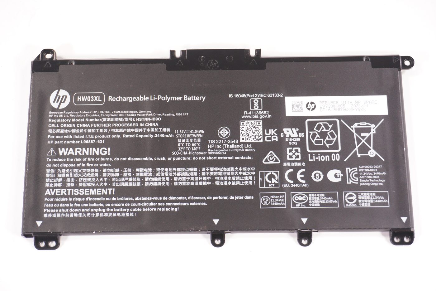 41.04 Wh 11.34v 3440mAh Battery