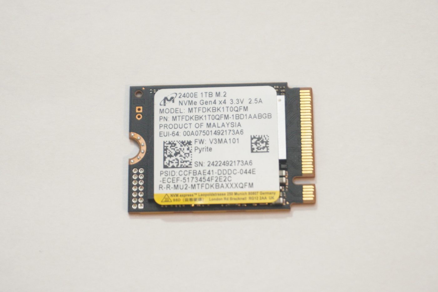 Micron 1TB NVMe PCIe Gen4x4 M.2 2242 SSD